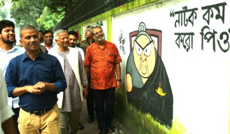 বাংলা ভয়েস ডেস্ক : জুলাই ও আগস্টে ছাত্র নেতৃত্বাধীন গণ-অভ্যুত্থানের সময় তরুণ বিপ্লবীদের আঁকা গ্রাফিতি দেখতে ঢাকা বিশ্ববিদ্যালয় এলাকা পরিদর্শন…