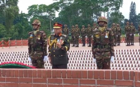 মোঃ মনির মন্ডল,সাভার সংবাদদাতা: সাভারে জাতীয় স্মৃতিসৌধে মহান মুক্তিযুদ্ধে বীর শহিদদের প্রতি শ্রদ্ধা জানিয়ে পুষ্পস্তবক অর্পণ করেন নবনিযুক্ত সেনাবাহিনী প্রধান…