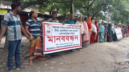 আশুলিয়ায় বন্ধ কারখানা খুলে দেওয়ার দাবিতে মানববন্ধন করেছে নাসা গ্রুপের শ্রমিকরা।এতে হাত ধরে ওই গার্মেন্টসের নারী ও পুরুষ মিলিয়ে কয়েক…