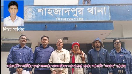 সেলিম তালুকদার, শাহজাদপুর (সিরাজগঞ্জ) প্রতিনিধি: সিরাজগঞ্জের শাহজাদপুরের আলোচিত কলেজছাত্র সাব্বির হত্যা মামলার যাবজ্জীবন সাজাপ্রাপ্ত প্রধান আসামি মোঃ ওয়াজ আলীকে (৬০)…