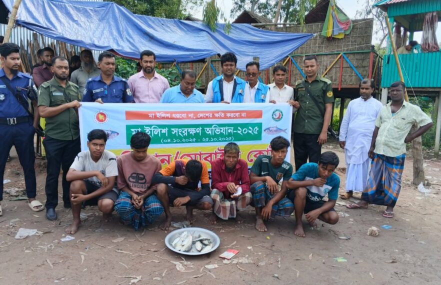 এ সময় ২ হাজার ৫০০ মিটার কারেন্ট জাল ও ২টি চায়না দুয়ারী জাল ধ্বংস করা হয়। উদ্ধারকৃত প্রায় আড়াই কেজি মা ইলিশ স্থানীয় এতিমখানার শিশুদের মাঝে বিতরণ করা হয়।
