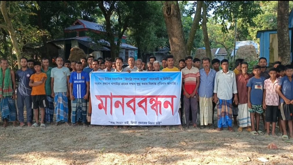 মানববন্ধনে আরও বলা হয়, “সময় টিভি উদ্দেশ্যপ্রণোদিতভাবে গ্রামের মানুষকে ছোট করার জন্য এই সংবাদ প্রকাশ করেছে। তাই আমরা জেলার অন্যান্য সাংবাদিকদের সঠিক সংবাদ প্রচারের আহ্বান জানাচ্ছি।”