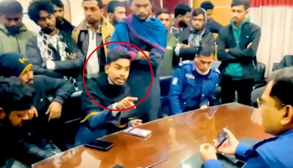 ভিডিওতে দেখা যায়, থানার ভেতরে বসে ওসির সঙ্গে বাগ্বিতণ্ডার একপর্যায়ে নিজেকে বৈষম্যবিরোধী ছাত্র আন্দোলনের নেতা পরিচয় দিয়ে বিভিন্ন সহিংস ঘটনার প্রসঙ্গ টেনে তিনি হুমকিমূলক বক্তব্য দেন।