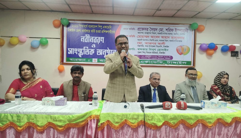 ২০২৬ শিক্ষাবর্ষে ভর্তি হওয়া প্রশিক্ষণার্থীদের নবীনবরণ ও সাংস্কৃতিক অনুষ্ঠান অনুষ্ঠিত হয়েছে বাংলাদেশ শিশু একাডেমি টাঙ্গাইল জেলা কার্যালয়ে।