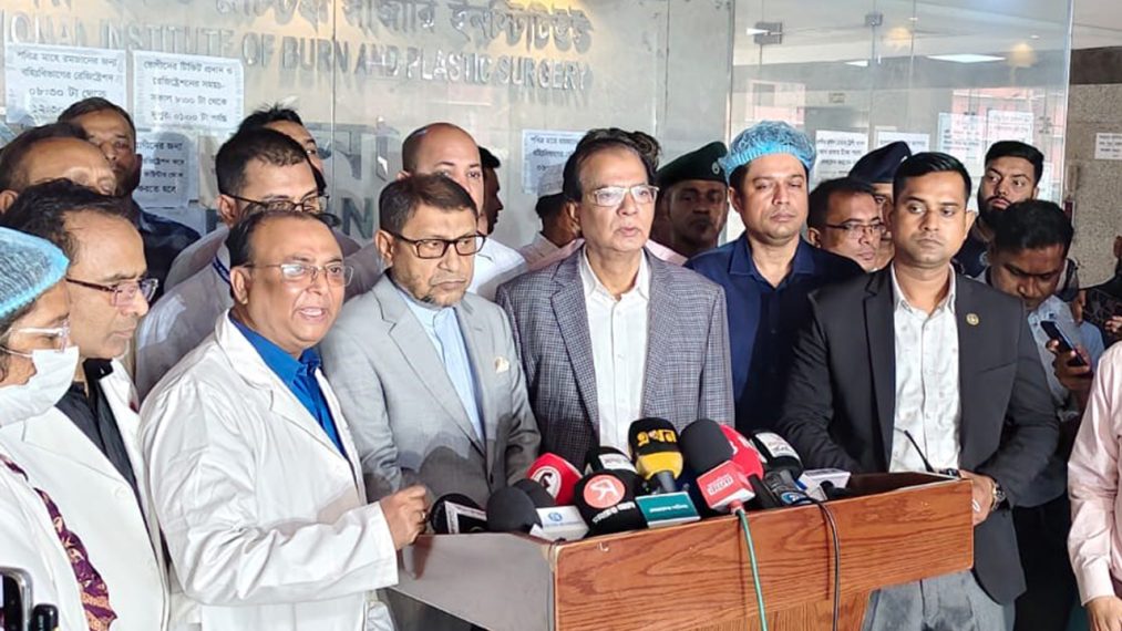 এ সময় সাংবাদিকদের সঙ্গে কথা বলেন স্বাস্থ্যমন্ত্রী সরদার মো. সাখাওয়াত হোসেন। তিনি বলেন, চট্টগ্রাম থেকে একই পরিবারের ৯ জন অগ্নিদগ্ধের মধ্যে ২ জন মারা গেছেন, সাতজন চিকিৎসা নিচ্ছেন। একজন রোগী ভেন্টিলেশনে আছেন। আমি তাদের দেখে এসেছি, ভর্তি রোগীদের সুচিকিৎসা নিশ্চিত করা হবে। অন্যদিকে কুমিল্লা থেকে সকালে একই পরিবারের চারজন এসেছে তাদের মধ্যে দুইজনের অবস্থা আশঙ্কাজনক। আমরা এখানে চিকিৎসকদের বলেছি তাদের সর্বোচ্চ চিকিৎসা দেওয়ার জন্য।