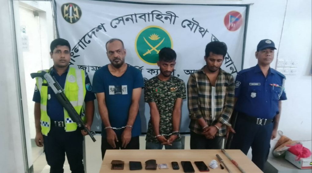 যৌথবাহিনী জানায়, ভোররাতে জামগড়া সেনা ক্যাম্পের একটি নিয়মিত টহল দল আশুলিয়ার পল্লীবিদ্যুৎ-বাইপাইল এলাকায় দায়িত্ব পালন করছিলেন। এসময় ছিনতাই চক্রের তিন সদস্যকে আটক করা হয়। তাদের কাছ থেকে ছিনতাইয়ের নগদ পাঁচ হাজার টাকা, নেশাদ্রব্য গাঁজাসহ বিভিন্ন আলামত জব্দ করা হয়েছে।