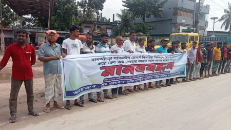 যশোরের শার্শার বাগআঁচড়া সাতমাইল মেসার্স কিবরিয়া ফিলিং স্টেশনের বিরুদ্ধে পরিমাপে তেল কম দেওয়ার অভিযোগে মানববন্ধন করেছে মটর গাড়ির মালিক, মটর…