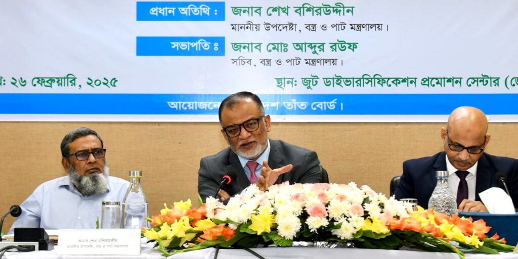 বুধবার (২৬ ফেব্রুয়ারি) রাজধানীর তেজগাঁওয়ের জুট ডাইভারসিফিকেশন প্রমোশন সেন্টার (জেডিপিসি)তে বাংলাদেশ তাঁত বোর্ড আয়োজিত জাতীয় শুদ্ধাচার কৌশলের আওতায় ‘তাঁতিদের মাঝে ন্যায্য মূল্যে সুতা, রং ও রাসায়নিক সরবরাহ সংক্রান্ত প্রচলিত পদ্ধতির সংস্কার ও উন্নয়ন’ বিষয়ক কর্মশালার প্রধান অতিথি’র বক্তব্যে বস্ত্র ও পাট মন্ত্রণালয় এবং বাণিজ্য মন্ত্রণালয়ের উপদেষ্টা শেখ বশিরউদ্দীন এসব কথা বলেন।