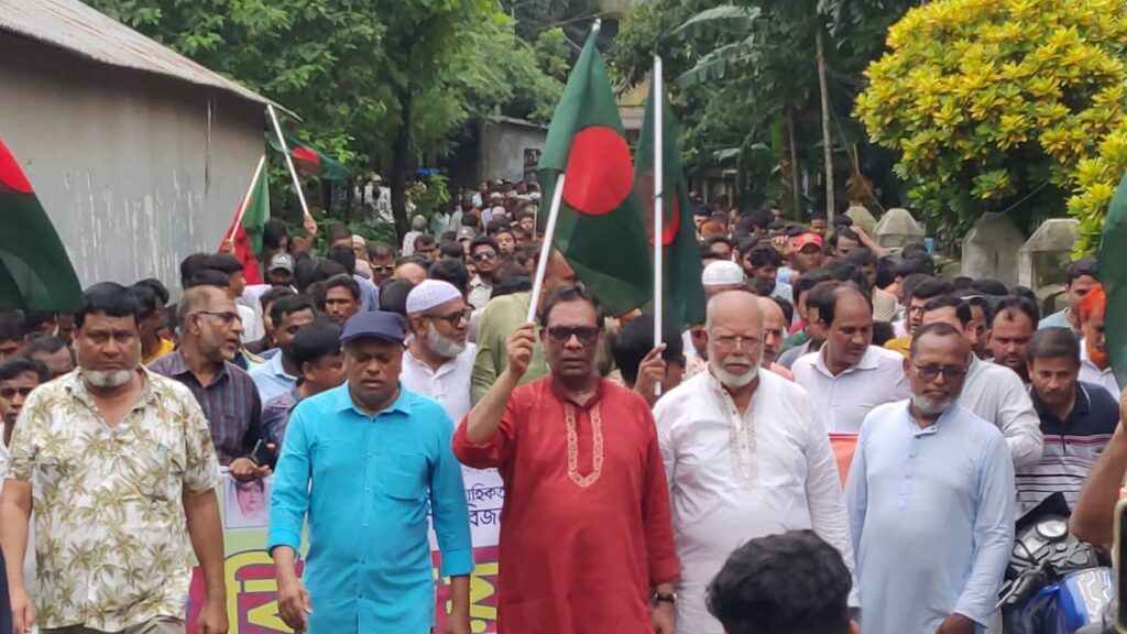 সিরাজগঞ্জের শাহজাদপুরে জুলাই আগস্ট ছাত্র জনতার গণঅভ্যুত্থানের এক বছর পূর্তি উপলক্ষে প্রফেসর ডক্টর এমএ মুহিতের নেতৃত্বে বিএনপি’র বিজয় মিছিল অনুষ্ঠিত।