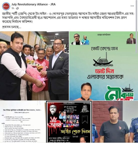 জাতীয় পার্টি (জেপি) থেকে টাংগাইল – ৬ (নাগরপুর দেলদুয়ার) আসনে টাংগাইল জেলা আওয়ামীলীগ এর সহ-সভাপতি এবং বৈষম্যবিরোধী ছাএ আন্দোলন এর হত্যা মামলার ৩ নাম্বার আসামীর নমিনেশন বৈধ গ্রহণ করেছে নির্বাচন কমিশন।